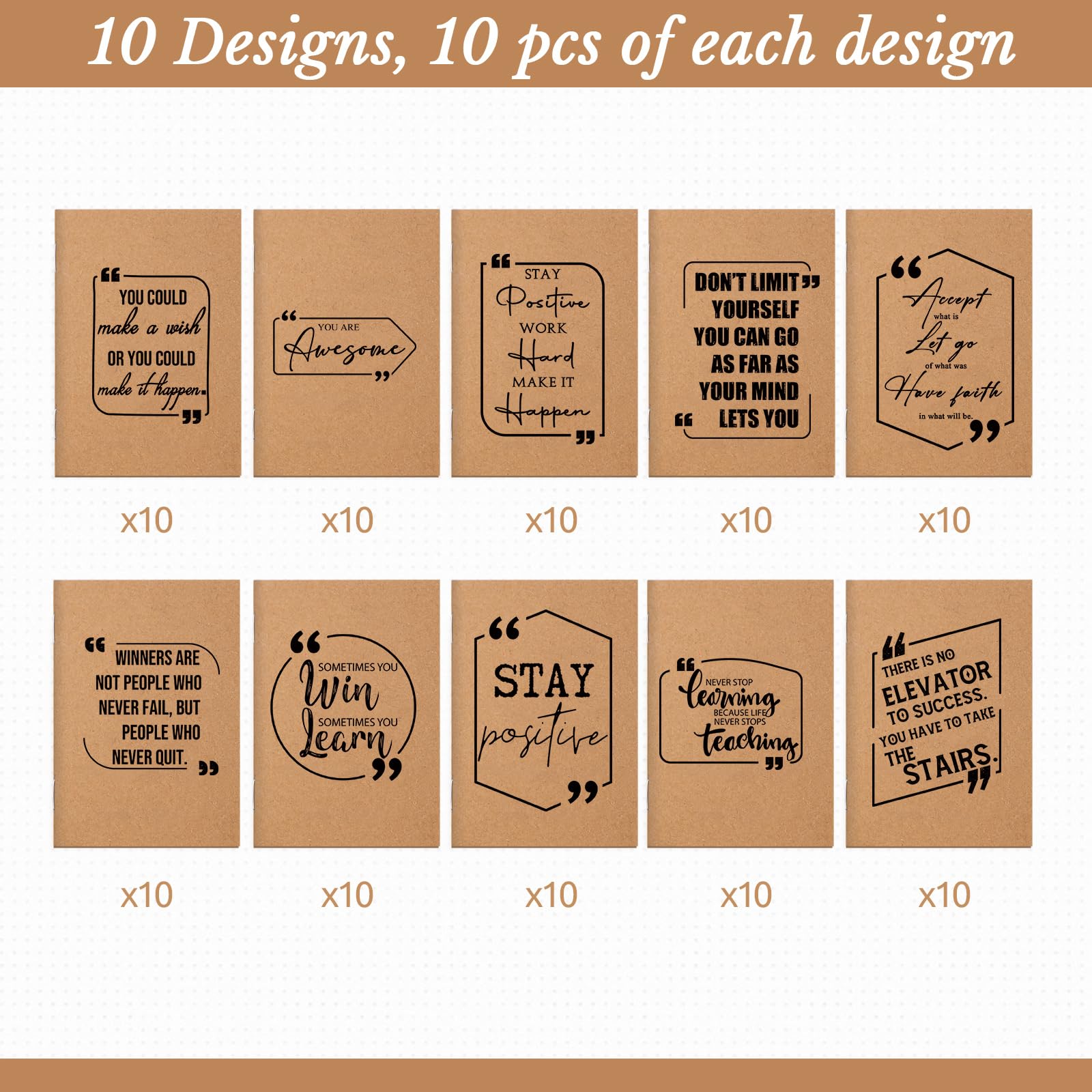 - Inspirational Stationery Set: you will receive 100 pieces of inspirational notebooks in 10 different styles; The abundant quantity and multiple designs will meet your daily applying and replacement needs, you can also share them with your colleagues, classmates, students and more