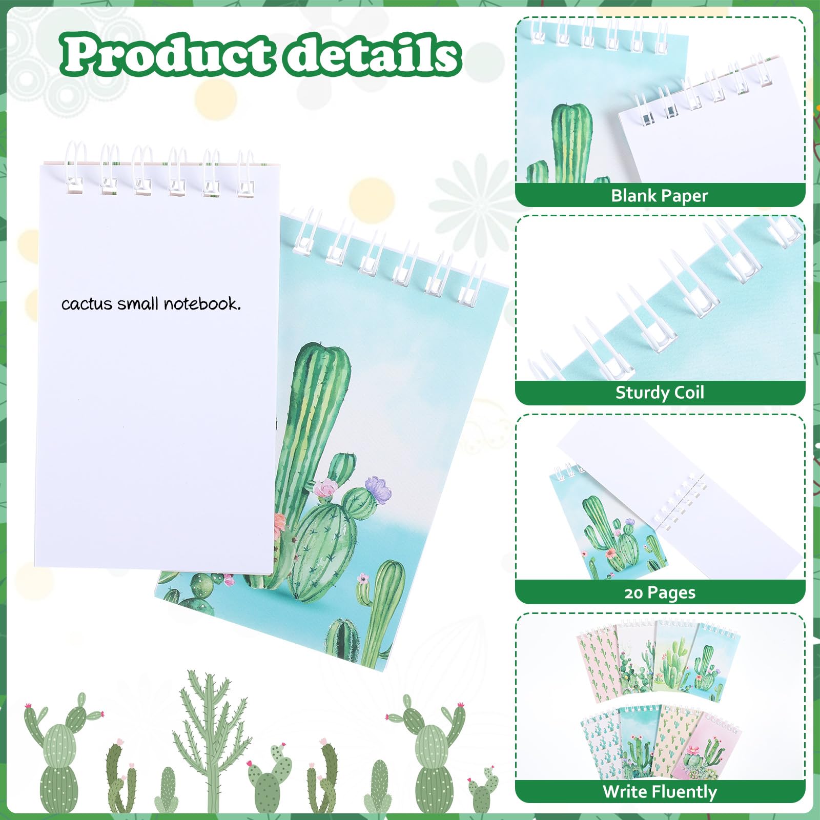 Fulmoon 48 Pcs Cactus Spiral Memo Pads Bulk with Cactus Ballpoint Pen Small Mini Note Pads Pen Mini Notepad Pocket Spiral Notebooks Top Bound Spiral Scratch Pad for School Office Home