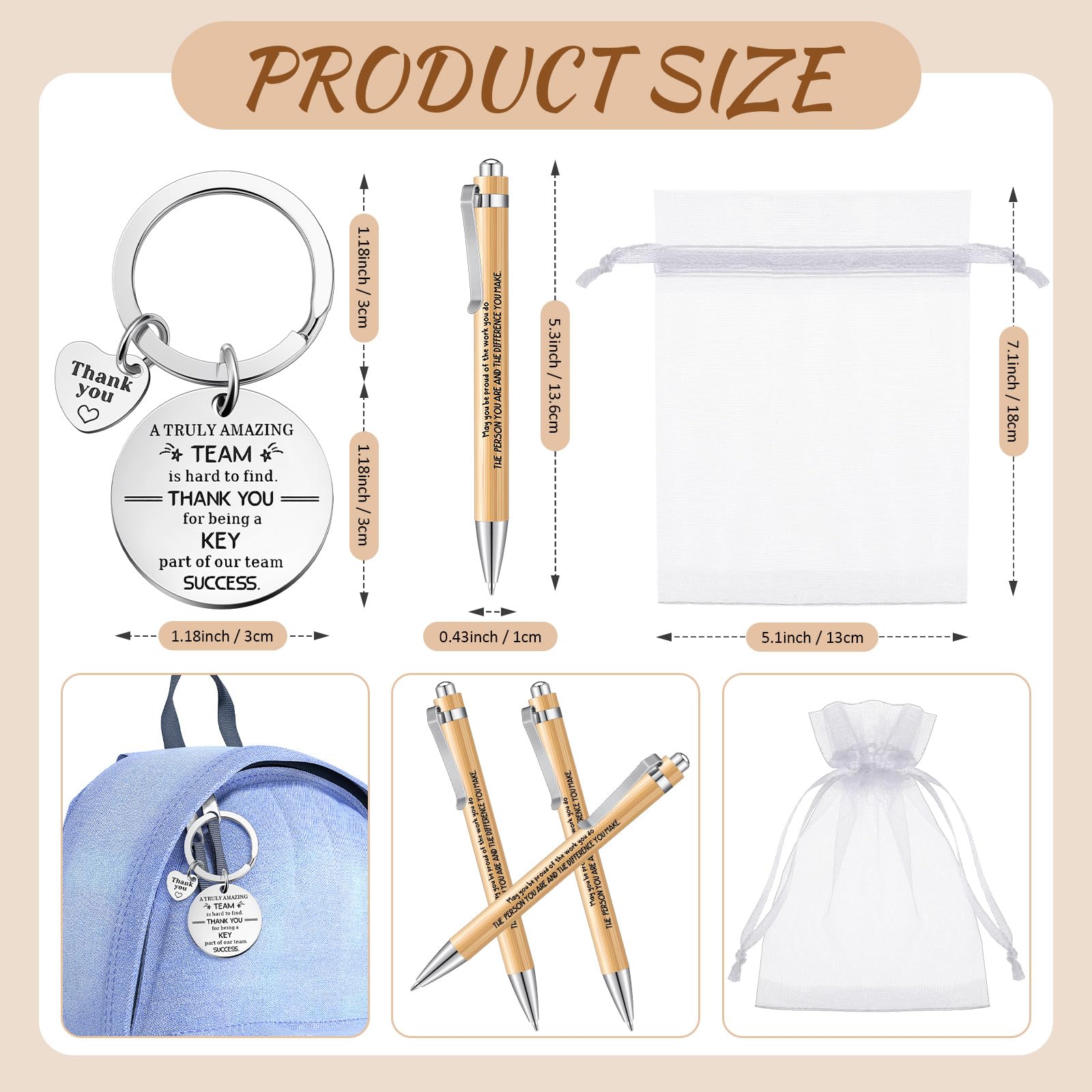 - Proper Size for You to Use: our employee appreciation pens measure about 5.35 x 0.39 inches/ 13.6 x 1 cm, and the notebook measures about 4.92 x 2.95 inches/ 12.5 x 7.5 cm, and the keychain measures about 1.18 inches/ 3 cm, the bag measures about 7.09 x 5.12 inches/ 18 x 13 cm, convenient for you to take along