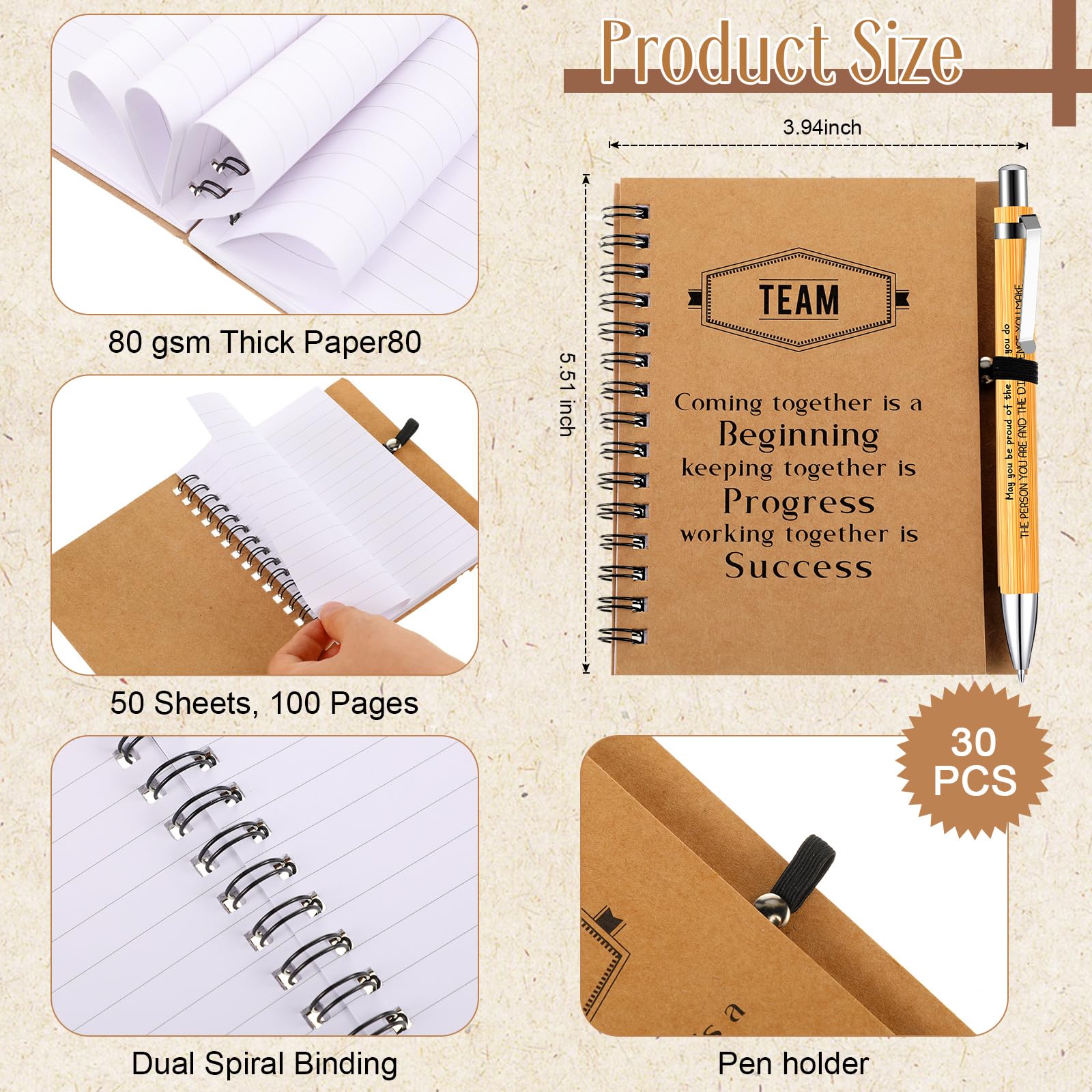 Fulmoon Employee Appreciation Gifts Thank You Gifts Inspirational Spiral Notepads Bulk with Bamboo Pen 3.9 x 5.5 Inch Motivational Notebooks for Coworker Staff Gift (30 Sets)