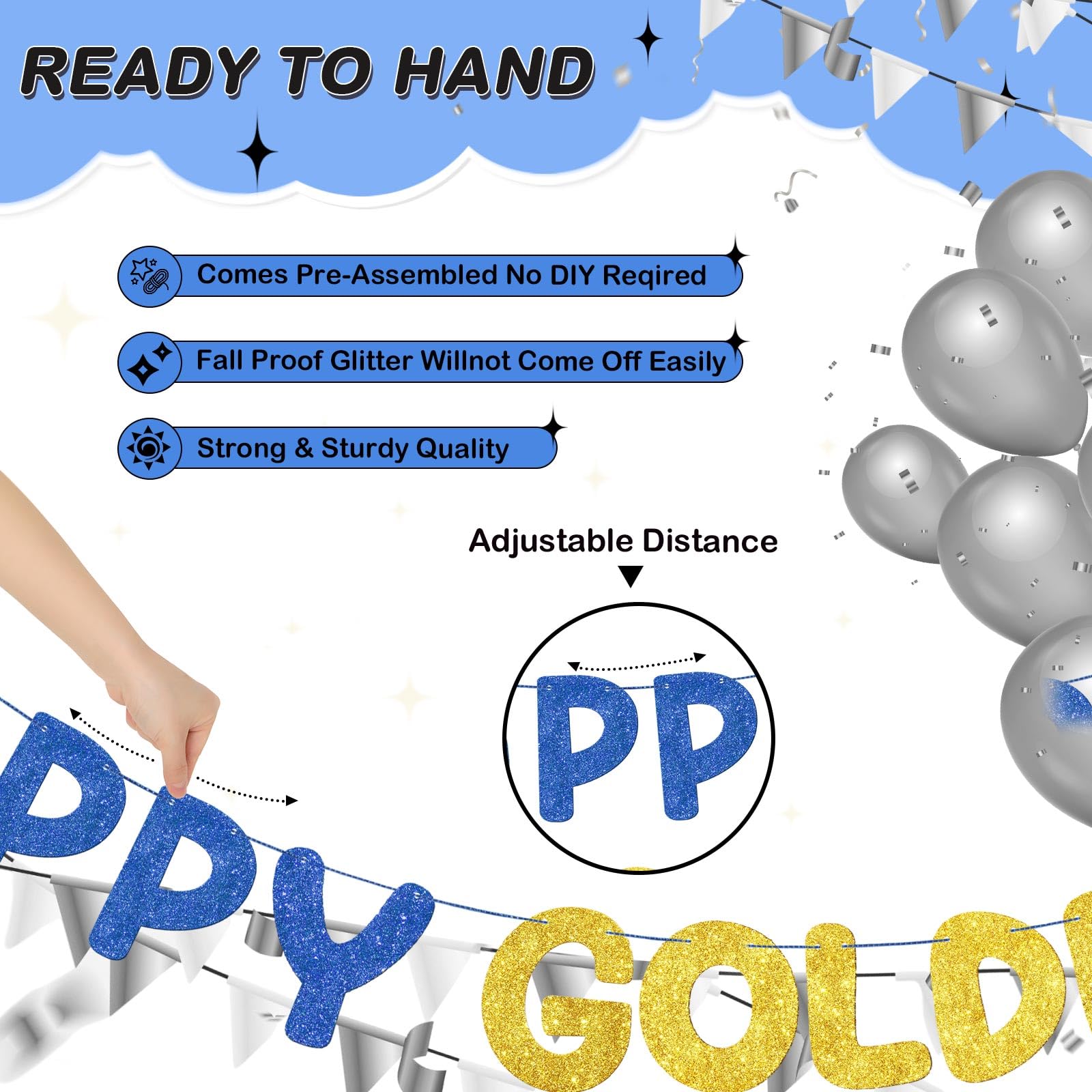 - Shining Appearance: add a touch to your party with the glittery of our happy birthday banner; Its striking dark blue, gold color promises to be the star of your event, enhancing the aesthetic appeal of most occasions; The banner's shimmering presence guarantees an elegant and charming