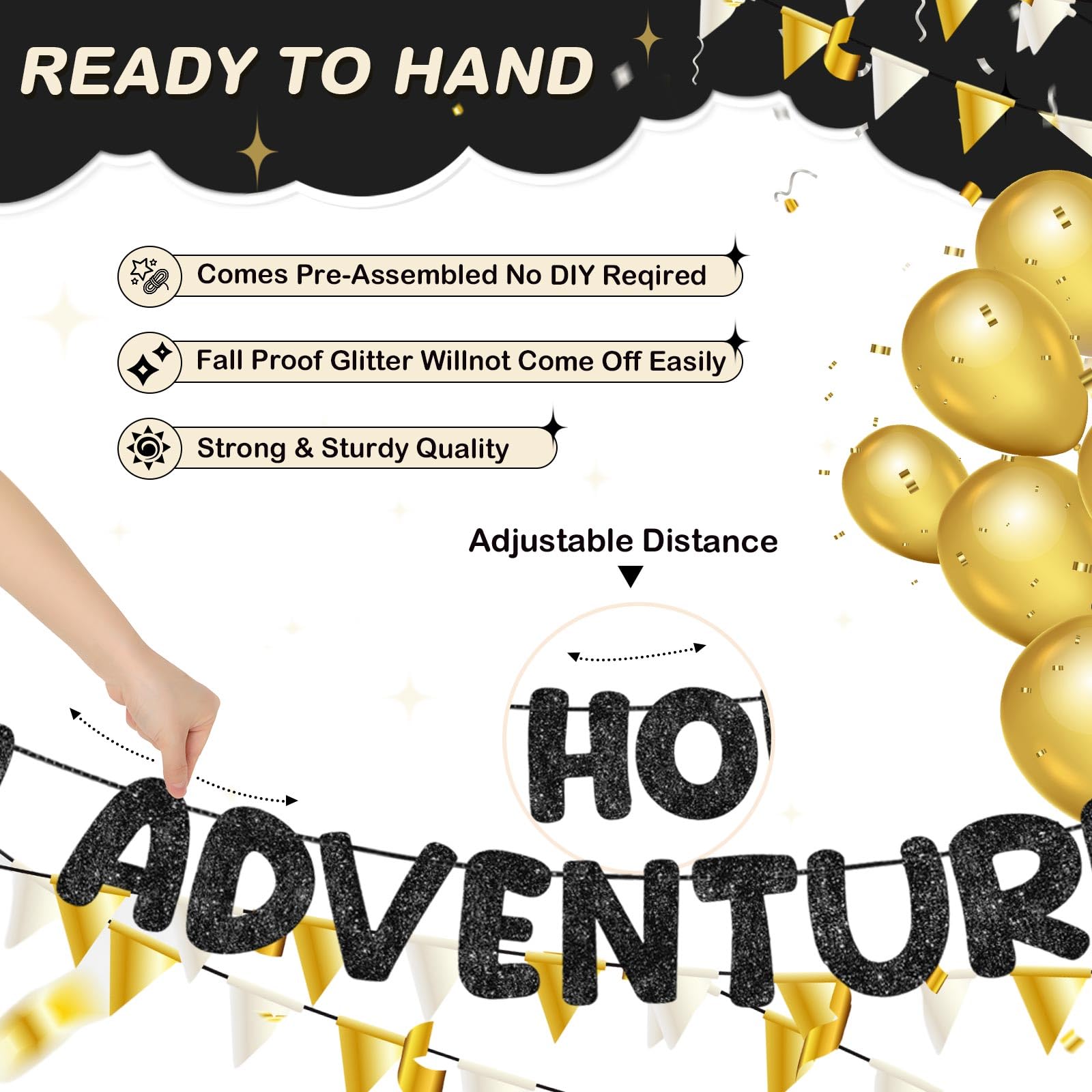 - Easy to Use: say goodbye to complicated setups. you will receive pre strung "New Home New Adventure New Memories" banners, these glitter banner come pre strung, saving you valuable time and effort, simply hang it up, and you're ready to housewarming party