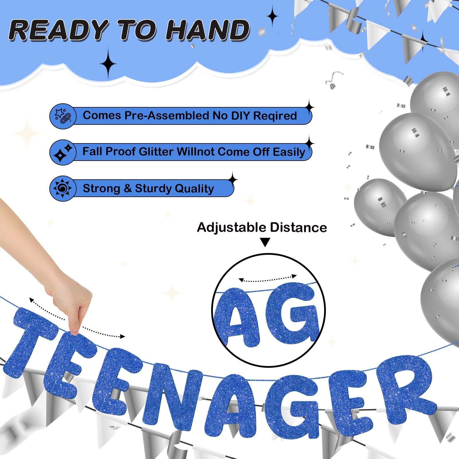 Fulmoon Pre Strung Ur a Skibidi Teenager Banner, No Diy, Glitter 13th Party Banner Teen Birthday Decorations for Boys Girls, Funny Birthday Party Supplies, Favors, Ideas and Gifts(Dark Blue)