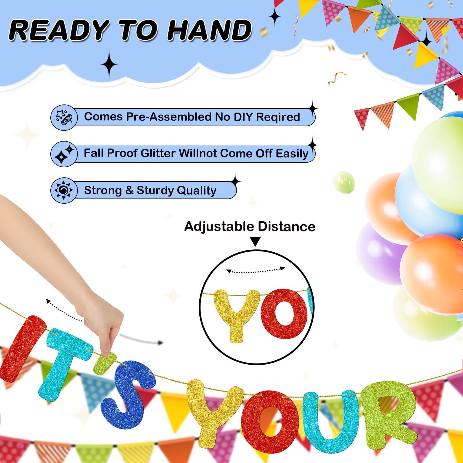 - Reliable Material: this no DIY birthday banners are made from sturdy glitter paper, providing reliability and durability, while meeting customers' quality requirements and pre strung requirements, creating a pleasant atmosphere for the birthday party