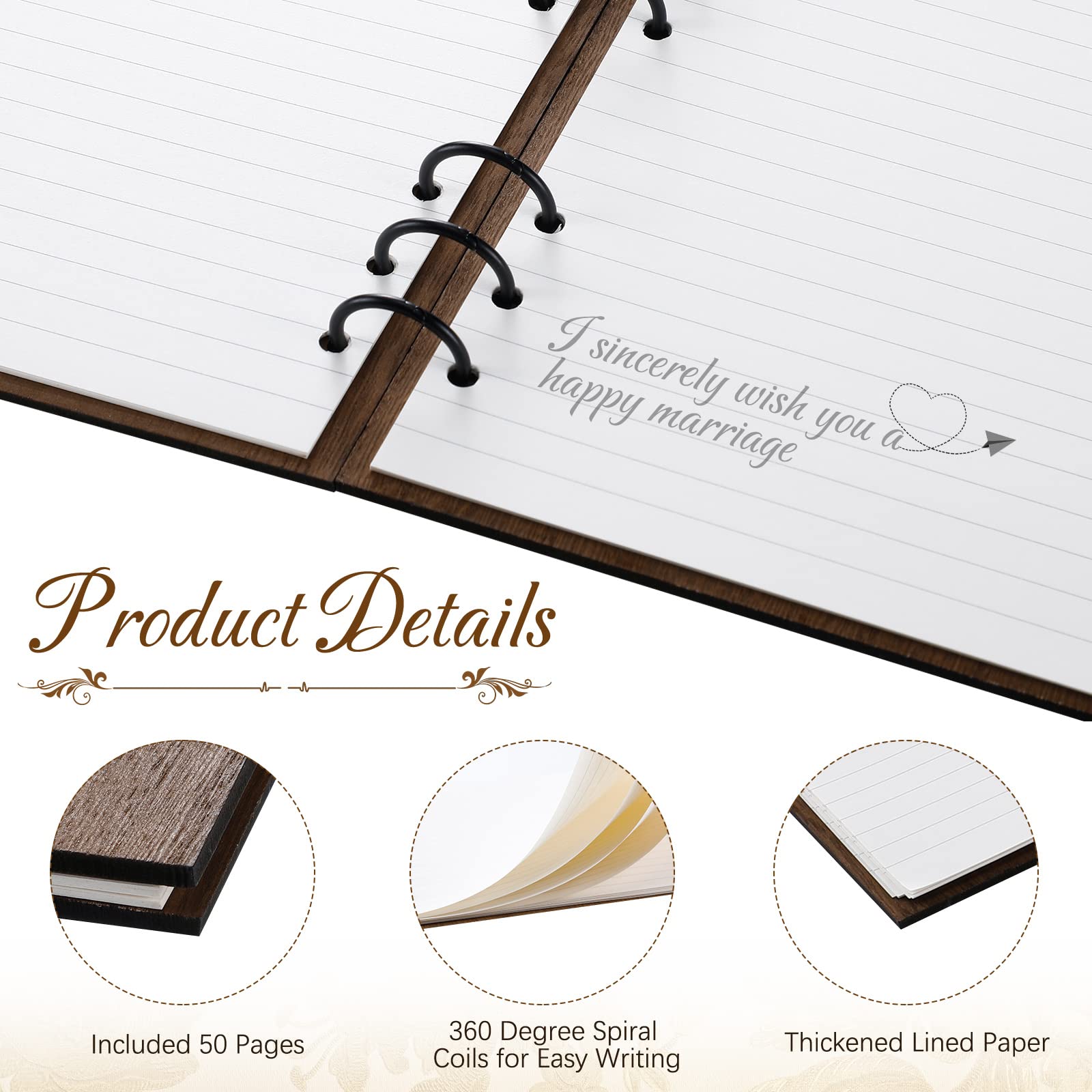 - Size Details: the rustic guestbook is about 7.2 x 10.24 inches/ 18.3 x 26 cm, these books are held in place by 360 degree spiral coils for easy writing and page turning, large enough for guests to leave messages; And you can also attach a photo of your wedding, making it an exquisite keepsake